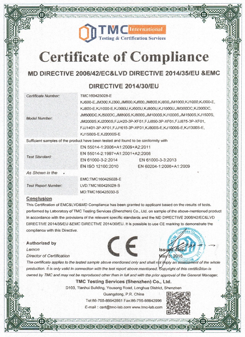 the ISO9001:2000, CE, CQC and EMC testing certificates, as the first professional manufacture of